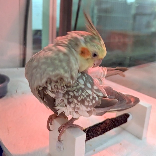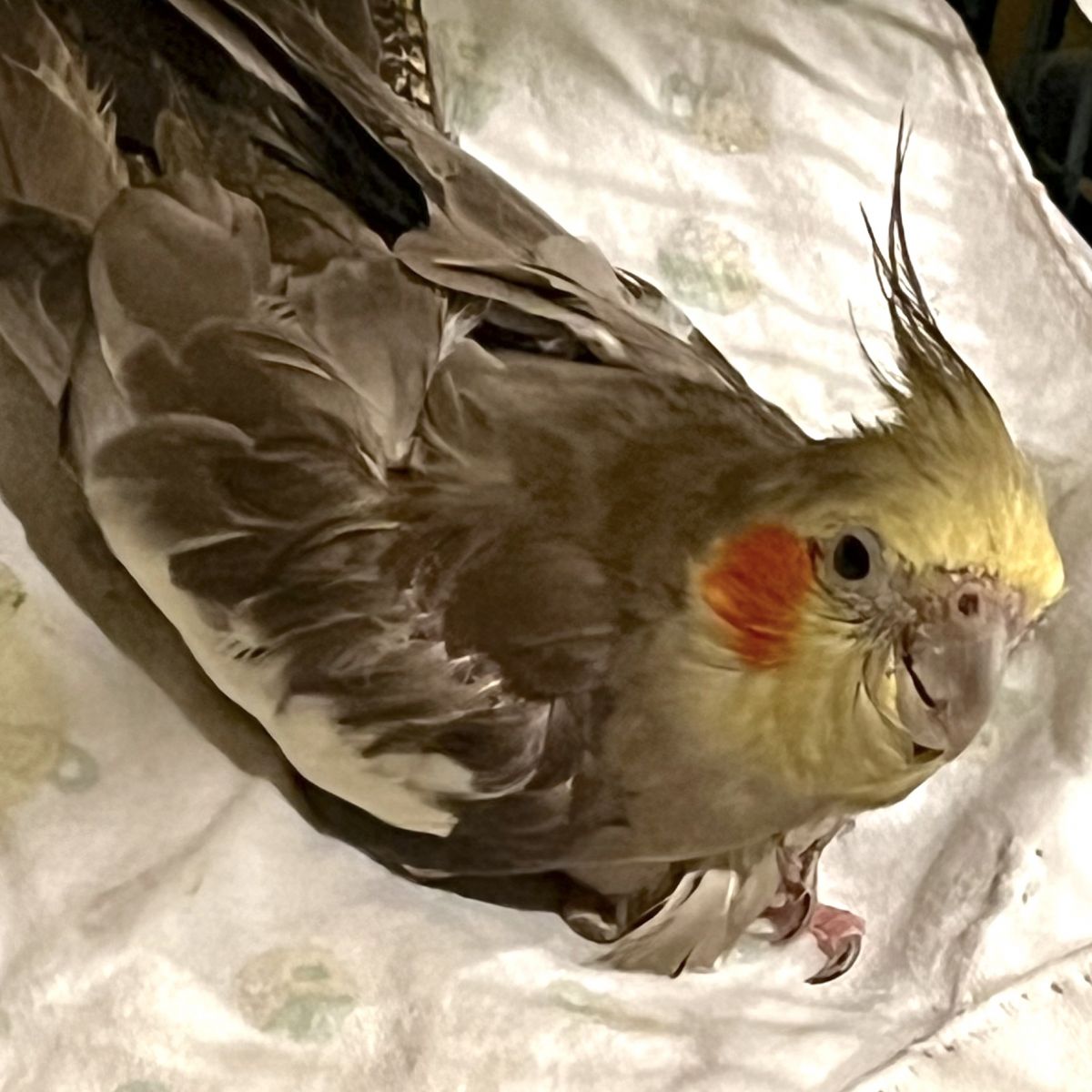 JoJo is about 15 years old. He's a very sweet cockatiel who likes hanging out with his humans. He loves his lifetime buddy even more though. But, because he was over-preening him, JoJo had to be placed in a separate cage. He became very unhappy and lovesick, and he began to fret and pace when he was in his cage. JoJo's avian vet found ankle and tail base injuries that required medical treatment and hospitalization for several weeks. His feathers are growing back in, and JoJo is doing much better now. He’ll need ongoing treatment for his hormonal issues though. JoJo’s a bit embarrassed by his self-inflicted injuries and the cost of his medical treatment. He’s hoping for a few donations to defray the costs. Will you help? |